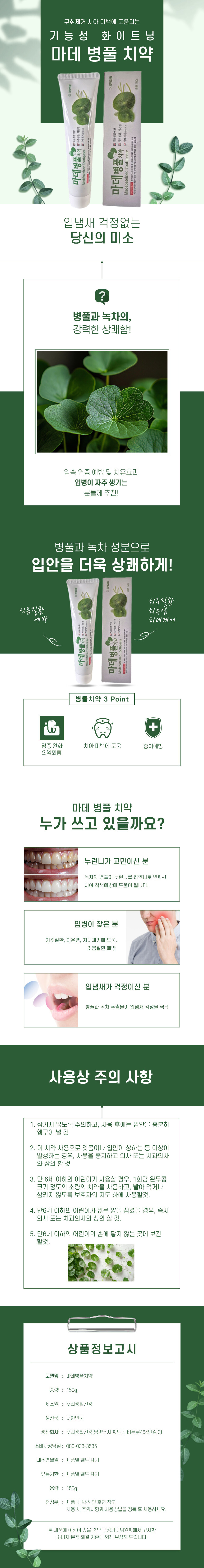 마데카소사이드 병풀추출물 치약 치주케어 구취제거 잇몸진정 시린이 저자극 천연성분 함유