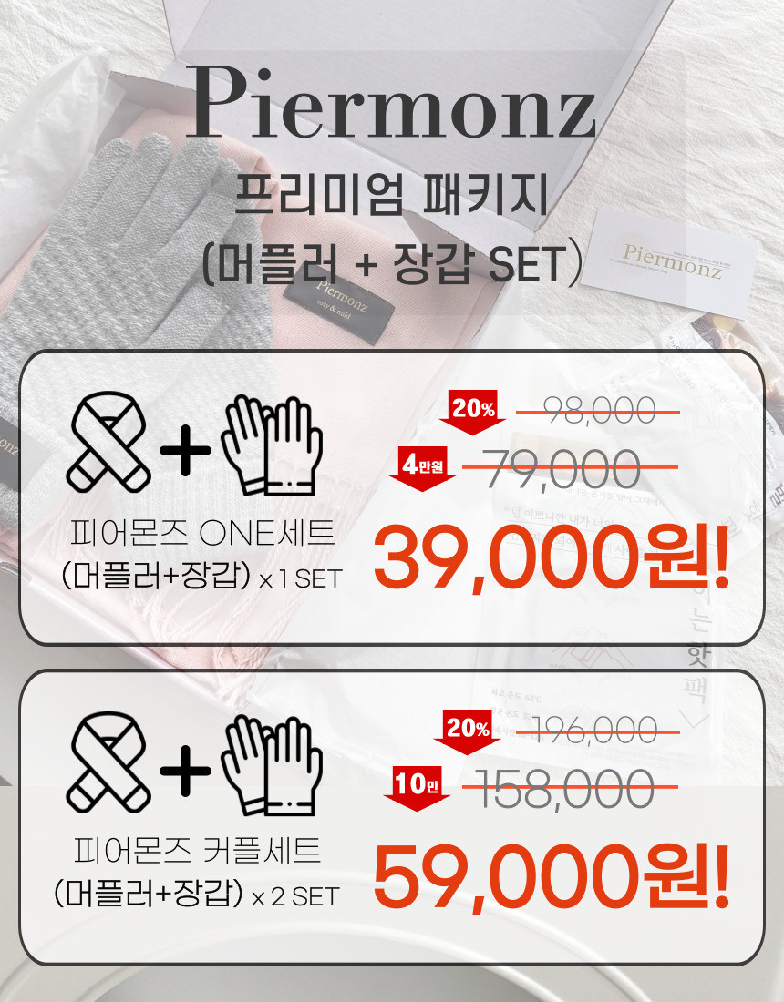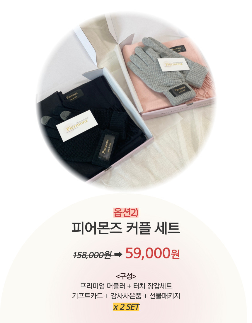 피어몬즈 캐시미어목도리 장갑 세트 커플목도리 털장갑 여성머플러 여자친구선물 부산세일페스타