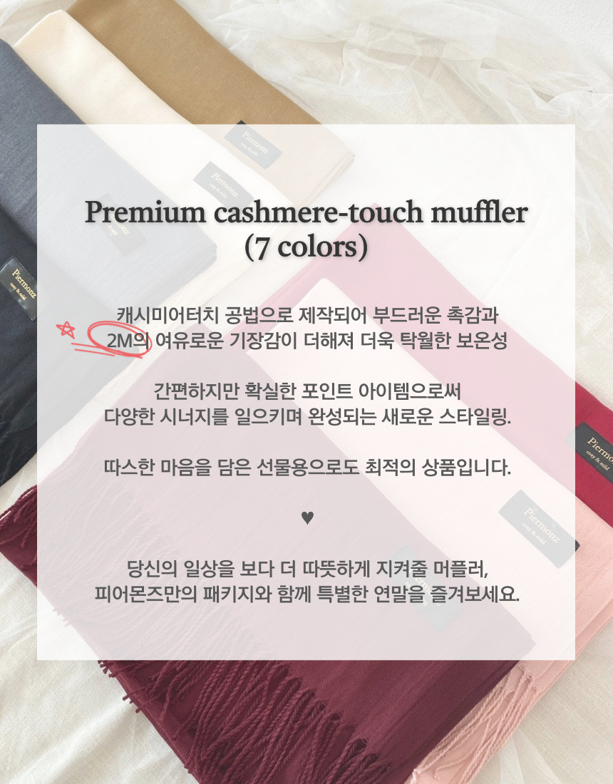 피어몬즈 머플러 겨울 숄 남자 여자 목도리 울 넥 커플 캐시미어 터치 단체 부모님 선물