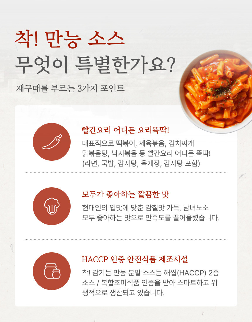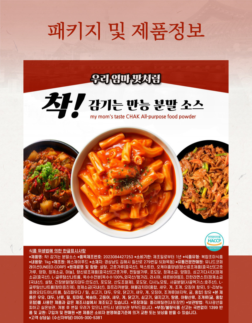 착소스 1kg 착감기는 만능 분말 떡볶이소스 닭도리탕양념 부대찌개양념장 [원산지:상세설명에 표시]