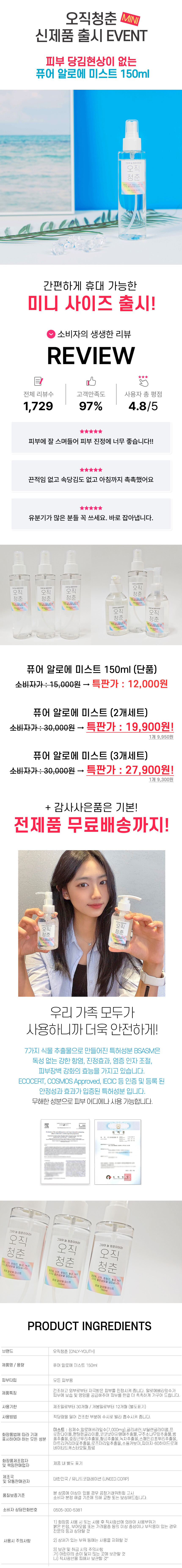 (광고특가 1+1) 오직청춘 퓨어 알로에 미스트 150ml